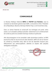 Accueil/A LA UNE/Communiqué du bureau politique du parti de pastef A LA UNE Communiqué du bureau politique du parti de pastef adminil y a 2 semaines0 4 Moins d’une minute adminil y a 2 semaines0 4 Moins d’une minute Facebook X Linkedin Tumblr Pinterest Reddit VKontakte Partager par email Imprimer